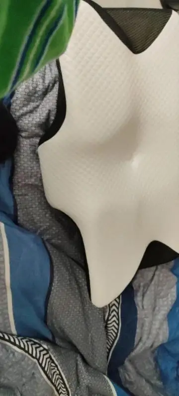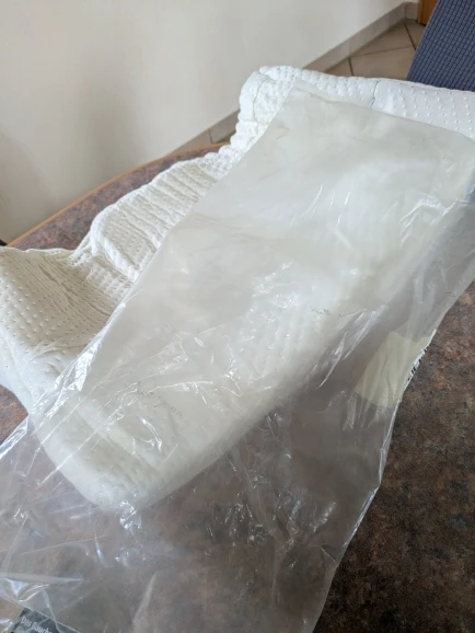 Unfortunately, the pillow was compressed into a plastic bag, so it is now very thin (5cm). I hope it will regain its original shape. Since it was rolled, it is of course not straight. But I hope it will be back.
