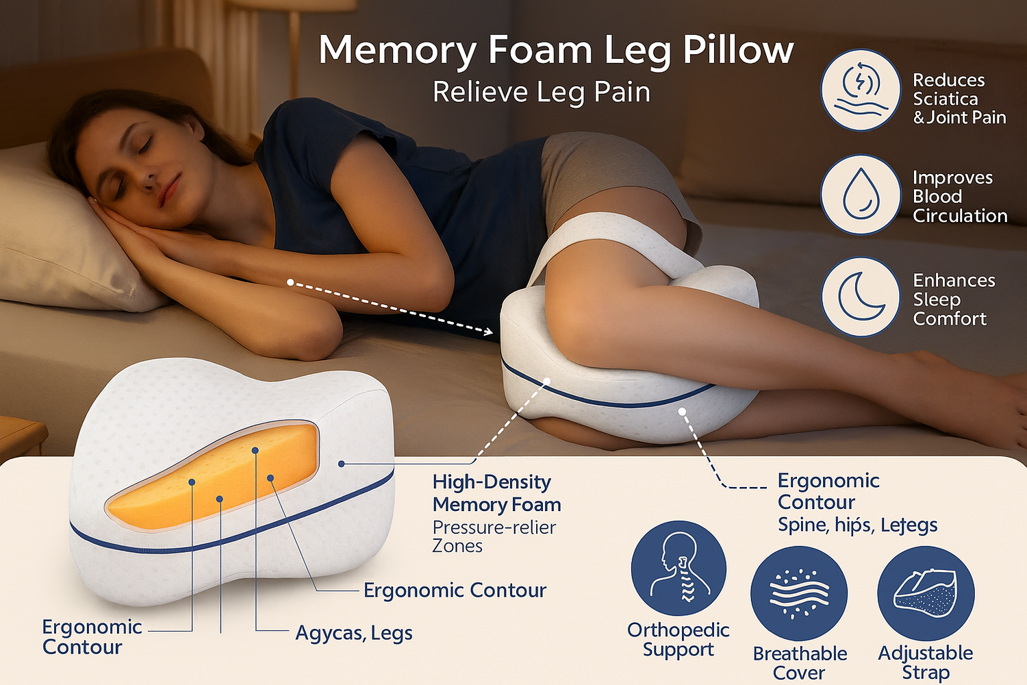 Oreiller en mousse à mémoire de forme pour les jambes, soulage les douleurs aux jambes