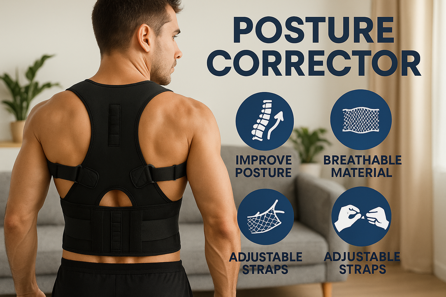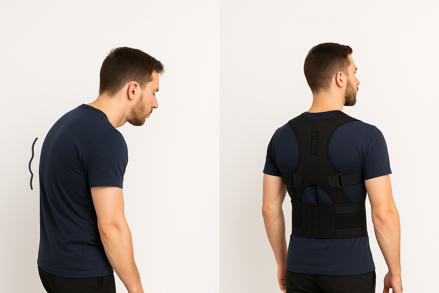 Ce correcteur de posture utilise une tension douce et des aimants intégrés pour soutenir le haut du dos et les épaules, vous aidant à vous tenir plus droit et à vous sentir plus à l'aise. Respirant, discret sous les vêtements et entièrement réglable pour un ajustement personnalisé, il est idéal au quotidien, que vous travailliez ou que vous marchiez.