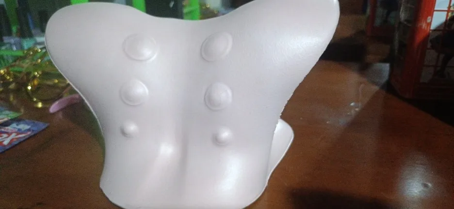 Soulagez vos douleurs cervicales et vos tensions aux épaules grâce à cet extenseur cervical de type chiropratique . Conçu pour réaligner votre colonne vertébrale et décompresser les points de pression, il procure un soulagement naturel , sans fil, sans médicaments ni rendez-vous. Allongez-vous, respirez et détendez-vous.
